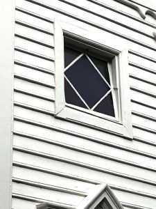 外からだとなんてことのない四角い窓にステンドグラスなんだけど中から見ると青と赤のなんともいえない美しい光